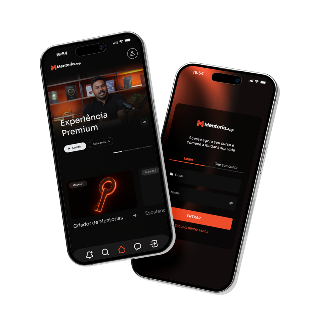Na Mentorfy, você tem a opção de contar com um aplicativo próprio em duas versões: a versão Standard, que oferece uma experiência geral do aplicativo, e a versão White Label, que é totalmente personalizada com a sua marca e identidade visual. Assim, seus alunos poderão baixá-lo diretamente na Apple Store ou na Play Store, com a sua marca em destaque.